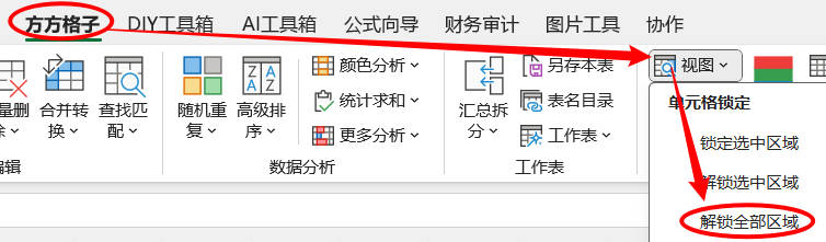 3.当前表的全部区域解除锁定,恢复编辑权限