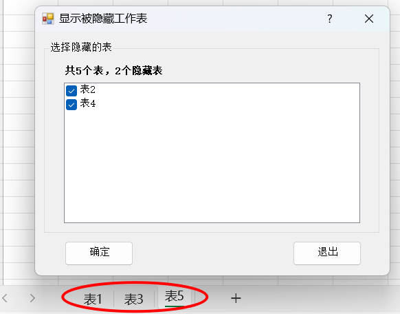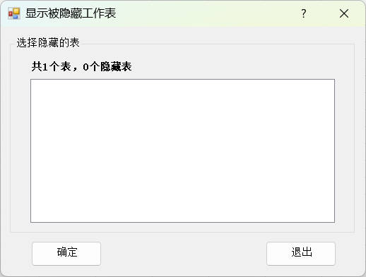 显示被隐藏工作表功能,用于恢复隐藏工作表的可见性,可显示当前工作簿共用的工作表和被隐藏的工作表个数,支持显示深度隐藏的工作表。