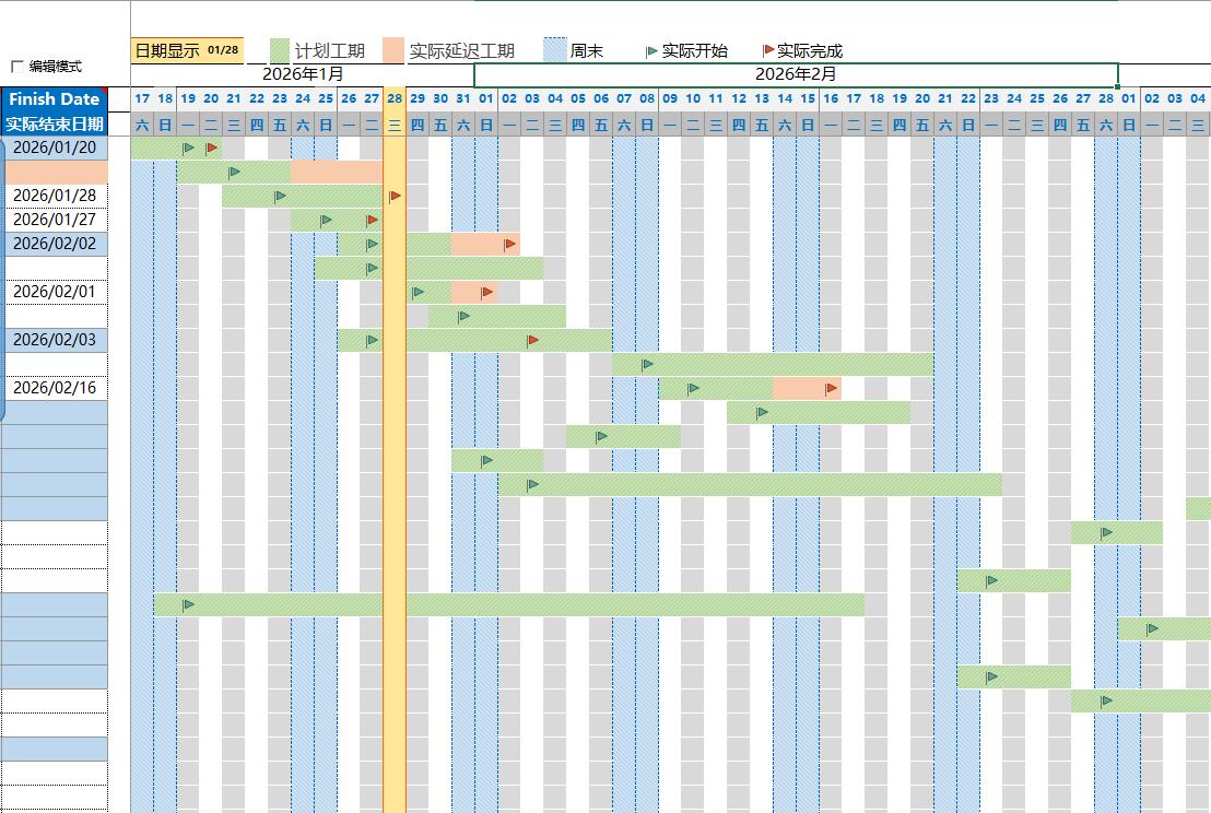 Excel宏项目进度管理施工进度图
