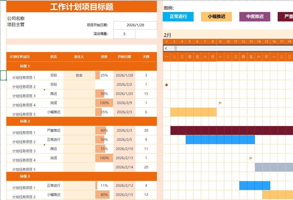关键词: Excel vba 项目进度 甘特图