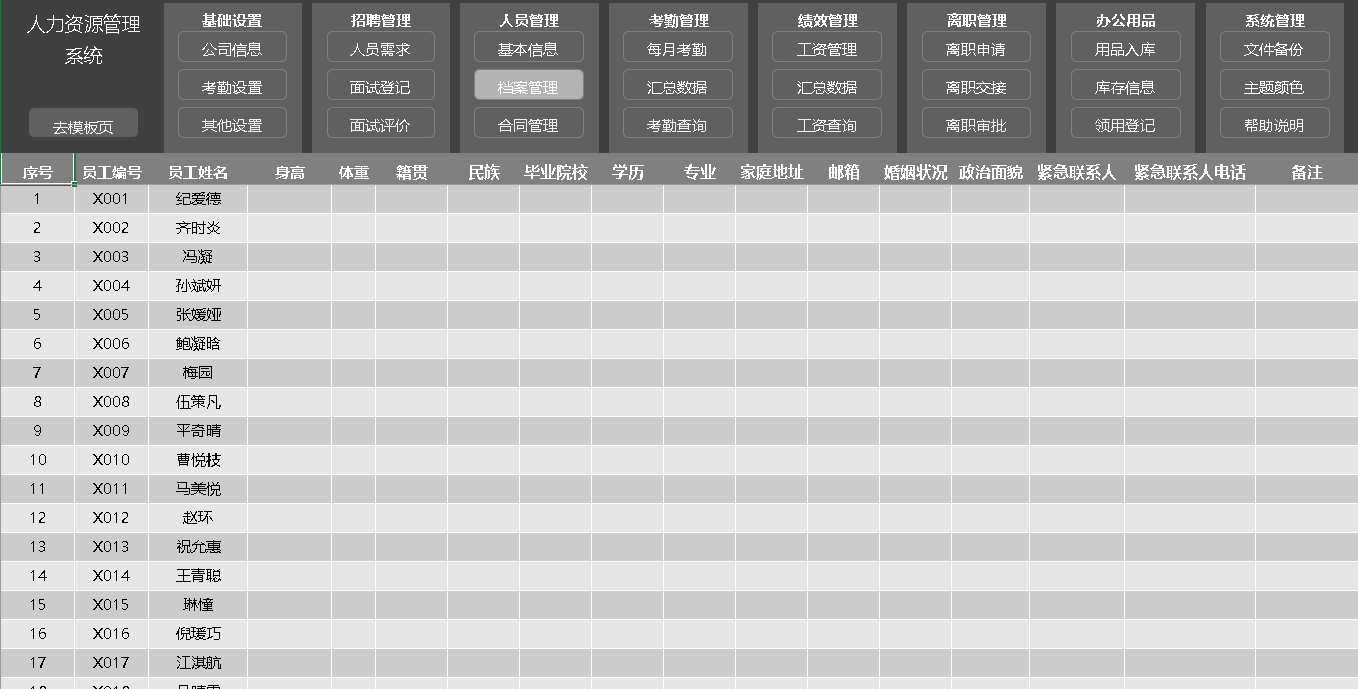 人事档案管理系统 EXCEL 模板表格人力资源通用表格