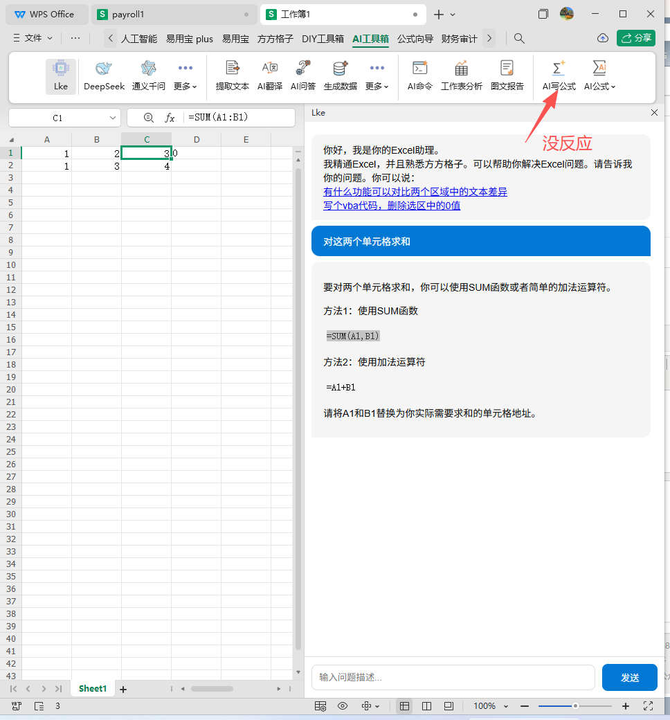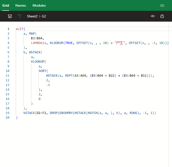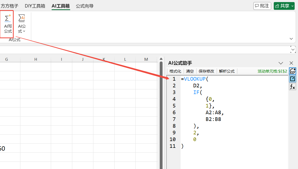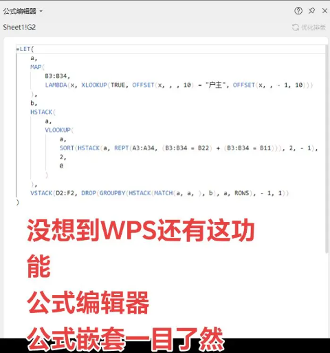不过它与wps个人版里的稍有区别,wps里可以通过拉宽界面缩放行数,比如上面这个可以vlookup一行if一行更易读,当然了它没有AI分析的那么好。
