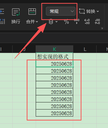 实现:单元格是常规型,同时日期格式是8位数字,如:20250628