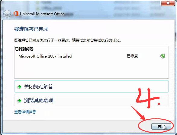 (4)当程序继续运行,直到下图时,请点击关闭。 然后程序将自动回到主界面,继续往下处理。