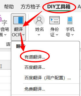 1.点击DIY工具箱> 语言 >翻译OCR>有道翻译…
