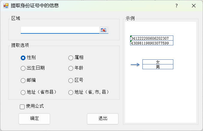 提取性别功能用于从身份证号码中提取性别信息,可批量自动判断,无需人工核对,提升数据处理效率,适配人员信息管理、表单统计等办公场景。
