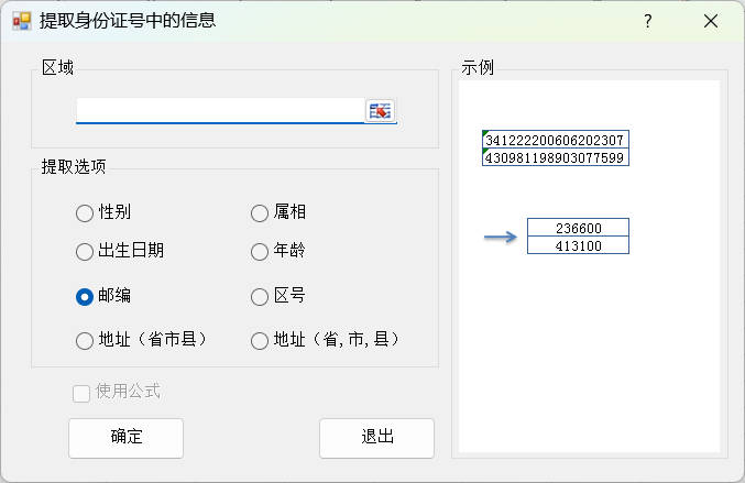 提取邮编功能,能够实现身份证号到邮编的批量映射。适合办公场景快速处理人员信息,无需手动查询,提升数据整理效率。