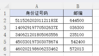 (一)从身份证号码中提取邮编
