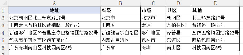 (一)将地址按省、市、县拆分归类