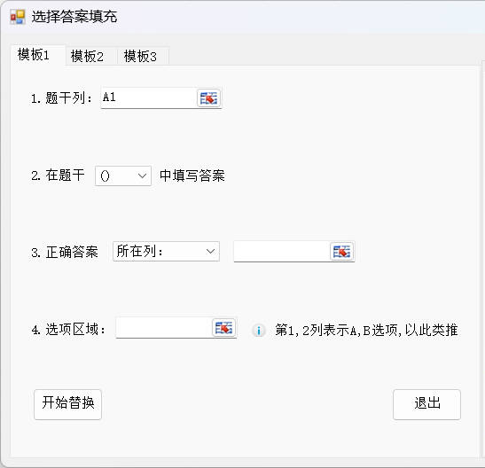 扩展:如果答案里带有具体的选项且选项分为多列,如选项A列:A.xxx 选项B列:B.xxx 选项C列:C.xxx,可以选择功能的第二个选项卡-模版2来进行填充;