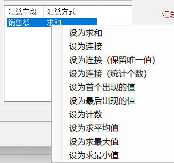 提示:可通过点击鼠标右键,更换汇总方式(求和、连接、求个数、平均值等)