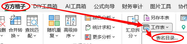 1.点击 方方格子>工作表> 表名目录…