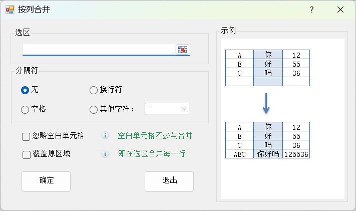 按列合并功能,能够将选区中的每列数据进行合并,操作快速便捷,极大提升数据处理效率。