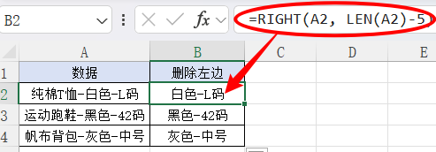2.选择删除A2单元格左边的5个字符,公式存放到B2,然后点击确定按钮
