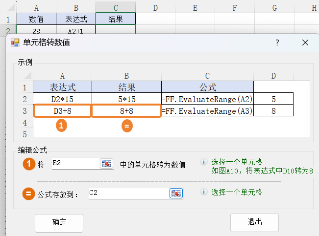2.将B2中的单元格转为数值,公式存放到C2,然后点击确定按钮