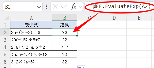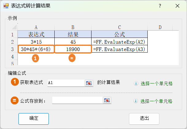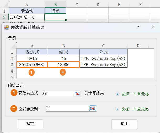 2.获取表达式A2的计算结果,公式存放到B2,然后点击确定按钮