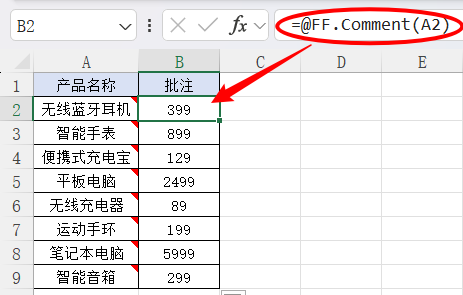 提取批注内容功能,采用函数公式快速抓取Excel中的文本批注信息。适配学术审稿、笔记整理等场景,无需手动复制,大幅提升批注反馈处理与信息汇总效率。