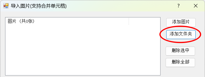提示:如果需要选择部分指定图片,可以点击添加图片按钮批量选择导入;如果需要将指定文件夹中的所有图片全部导入,那么可以选择 添加文件夹,更高效