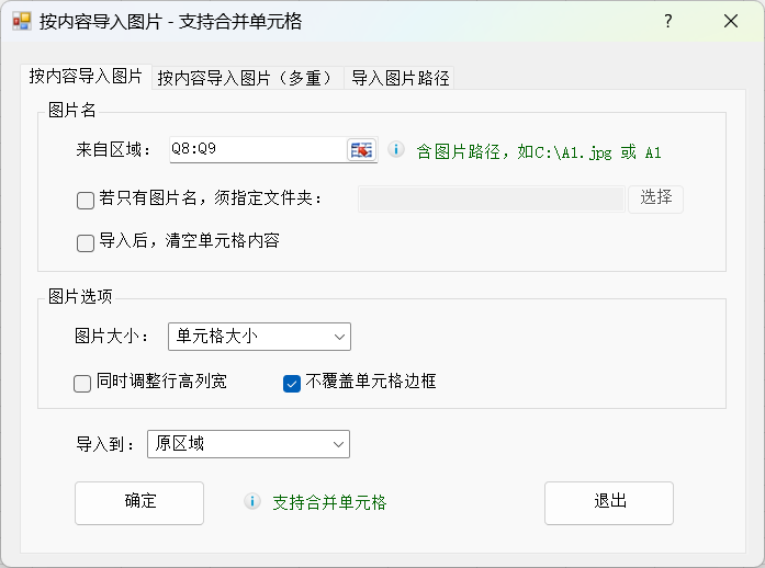 支持导入后清空单元格文字内容;导入的图片大小支持按原图大小、单元格大小等;