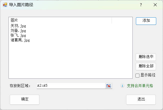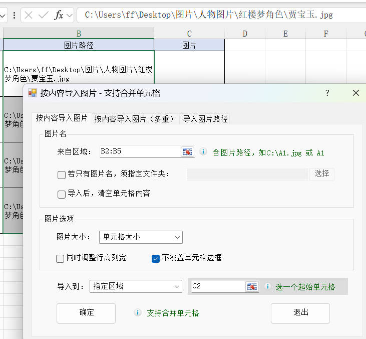 提示:如果单元格内只有图片名称,没有完整的图片路径,那么需要勾选添加图片所在的文件夹;
