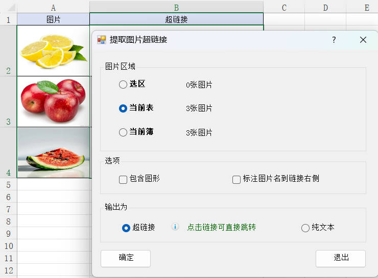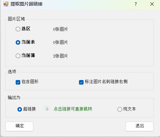 提示:支持提取包含图形的超链接,支持标注图片名到链接右侧;